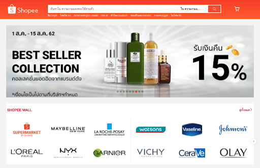 Shoppee (ชอปปี้) เว็บขายส่งออนไลน์ที่ใหญ่ที่สุดของไทย รวบรวมสินค้าเพื่อความสวยงามทุกรูปแบบ ไม่ว่าจะเป็นสกินแคร์ เมคอัพ หรือไลน์ความงามต่างๆ การรันตีว่าของแท้แน่นอน เพราะสาวๆสามารถเลือกช็อปจากแบรนด์แท้ได้โดยตรง ไม่ว่าจะเป็นเคาท์เตอร์แบรนด์ฝั่งตะวันตกที่พาเหรดมาครบทุกสินค้าความงาม แบรนด์ฝั่งตะวันออกชื่อดังจากญี่ปุ่น รวมถึงแบรนด์ดังของไทยที่มีจำหน่ายในราคาที่หลากหลายให้เลือกช็อปได้อย่างจุใจ ไม่พอ ทาง Shoppe ยังจัดโค้ดส่วนลดพิเศษตามเทศกาลต่างๆ รวมถึงค่าส่งฟรีที่พิเศษที่นี่ที่เดียวสำหรับสาวนักช็อปเท่านั้นค่ะ