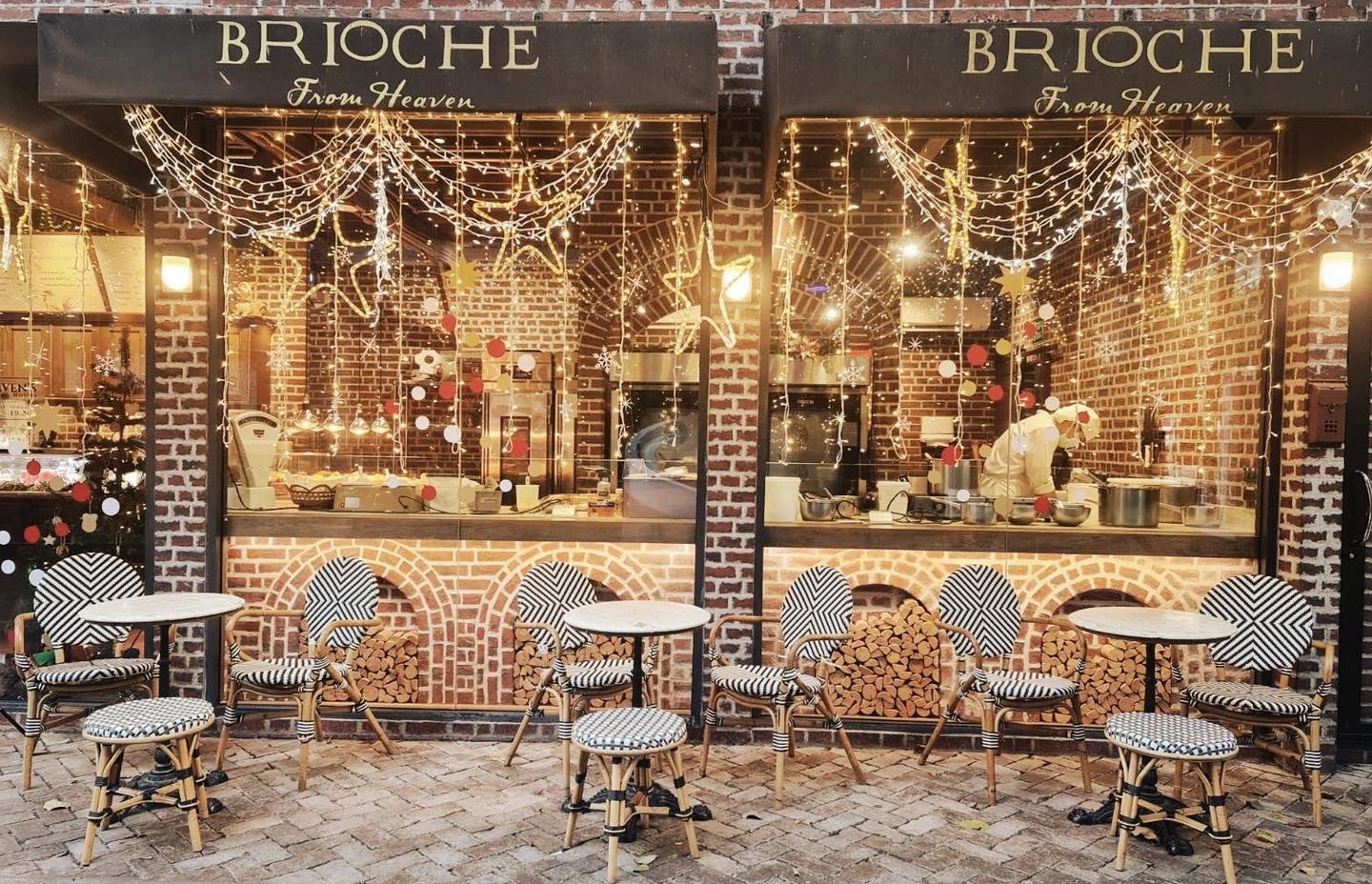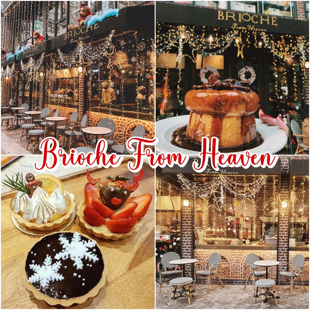 มาต่อกันที่ Brioche From Heaven คาเฟ่ดีไซน์เก๋ที่ในวันปกติก็บรรยากาศดีมากอยู่แล้ว เพราะเค้าเป็นคาเฟ่สไตล์ฝรั่งเศสที่ตกแต่งสวยงามเหมือนยกปารีสมาไว้ที่เมืองไทยยังไงอย่างงั้น พอถึงช่วงเทศกาลแบบนี้ความเริ่ดก็พุ่งขึ้นไปอีก 10 เลเวล ทั้งต้นคริสมาสต์ ทั้งไฟประดับประดา ทั้งเหล่าเบเกอรี่ที่ถูกตกแต่งให้มีความ Festive ขึ้นอีกเท่าตัว บอกเลยว่าไม่ควรพลาด ได้ทั้งถ่ายรูปสวยๆ เหมือนอยู่ปารีสทิพย์ ได้ทั้งลิ้มรสบริยอชจากสวรรค์ฝีมือเชฟไก่ ไม่ควรพลาดด้วยประการทั้งปวงค่าาา