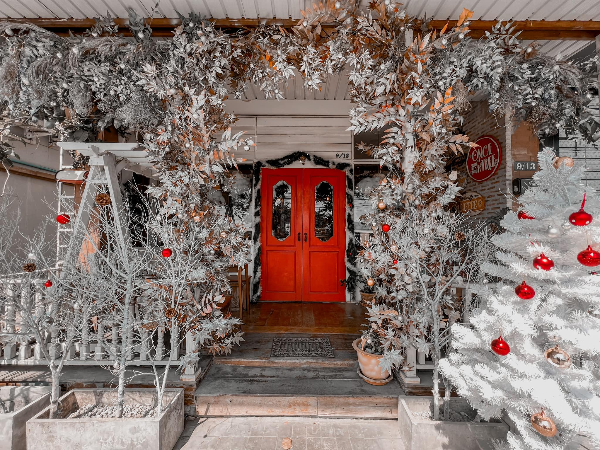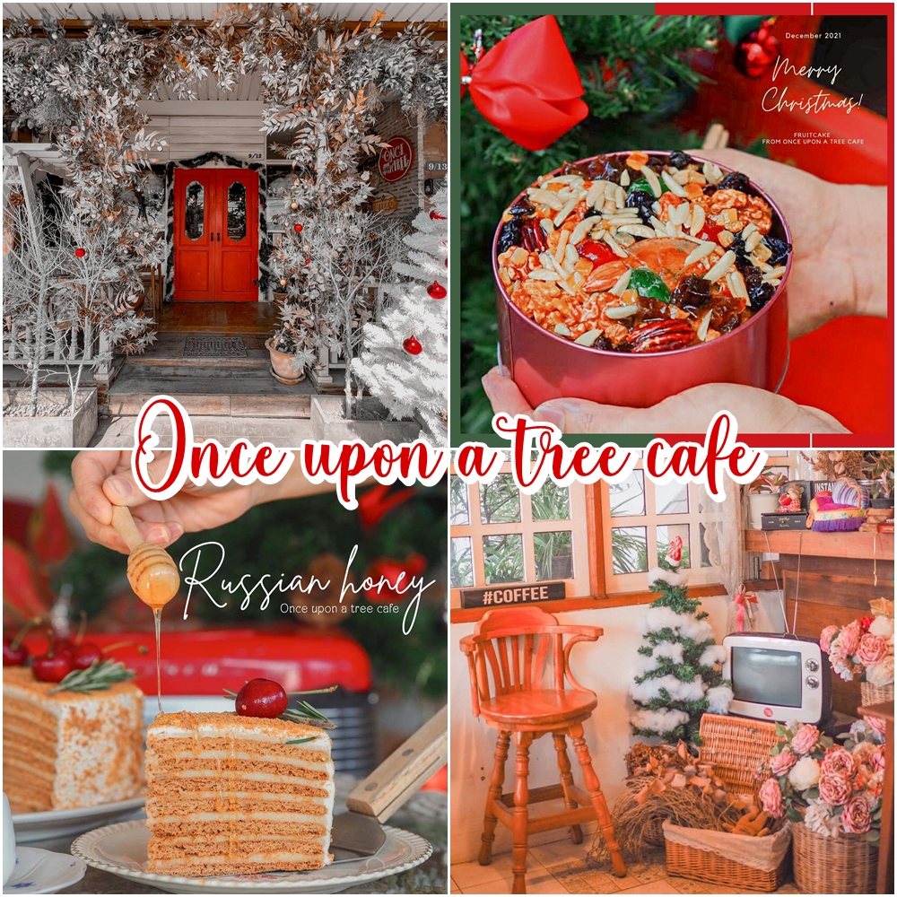 Once upon a tree cafe เป็นอีกหนึ่งคาเฟ่ที่เราอยากแนะนำ ด้วยดีไซน์น่ารักในสไตล์บ้านไม้แถบชนบทของอังกฤษ พอถูกตกแต่งในธีมคริสมาสต์แล้วยิ่งรู้สึกน่ารักและอบอุ่นขึ้นมากกก เค้าตกแต่งออกมาให้ความรู้สึกเหมือนได้ฉลองคริสมาสต์กับครอบครัวในค่ำคืนของเทศกาลคริสมาสต์เลยล่ะค่ะ และถึง vibes จะอบอุ่นแต่บอกเลยว่าของตกแต่งในร้านให้ความรู้สึกเหมือนหิมะกำลังตกหนักมาก ขาวโพลนไปหมด เห็นแล้วอยากหยิบเสื้อกันหนาวมาใส่เลยแหละ ได้ฟีลอังกฤษอะไรขนาดนั้นคะะ มุมถ่ายรูปก็มีเพียบ มาทีเดียวได้รูปไปอัพ IG อีกครึ่งเดือนแน่ๆค่า