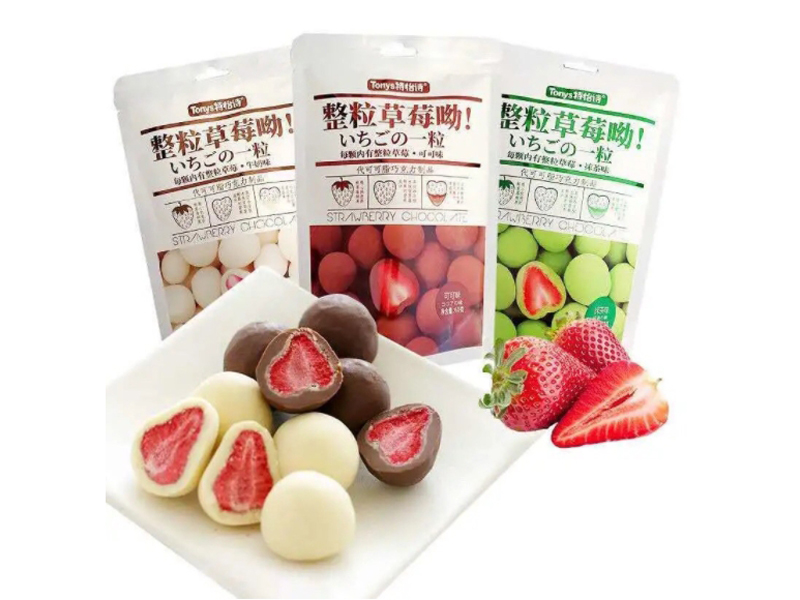 อันนี้ฮิตมากกกก คนญี่ปุ่นนี่ชอบทำอะไรน่ารักๆกันจังเลยเนอะ ยิ่งของอร่อยมารวมกับความน่ารักยิ่งดีงาม น้องคนนี้เค้าเป็นสตรอว์เบอร์รี่อบแห้งเคลือบช็อคโกแลต มี 3 รส ช็อคโกแลต, ไวท์ช็อคโกแลต และช็อคโกแลตรสชาเขียว รสชาติคือดีงามกินแล้วแสงออกปาก มีความเปรี้ยวฉ่ำๆหวานนิดๆของสตรอว์เบอร์รี่ ตัดกับความหอมหวานของช็อคโกแลตที่เคลือบไว้ ชื่นใจสุด!