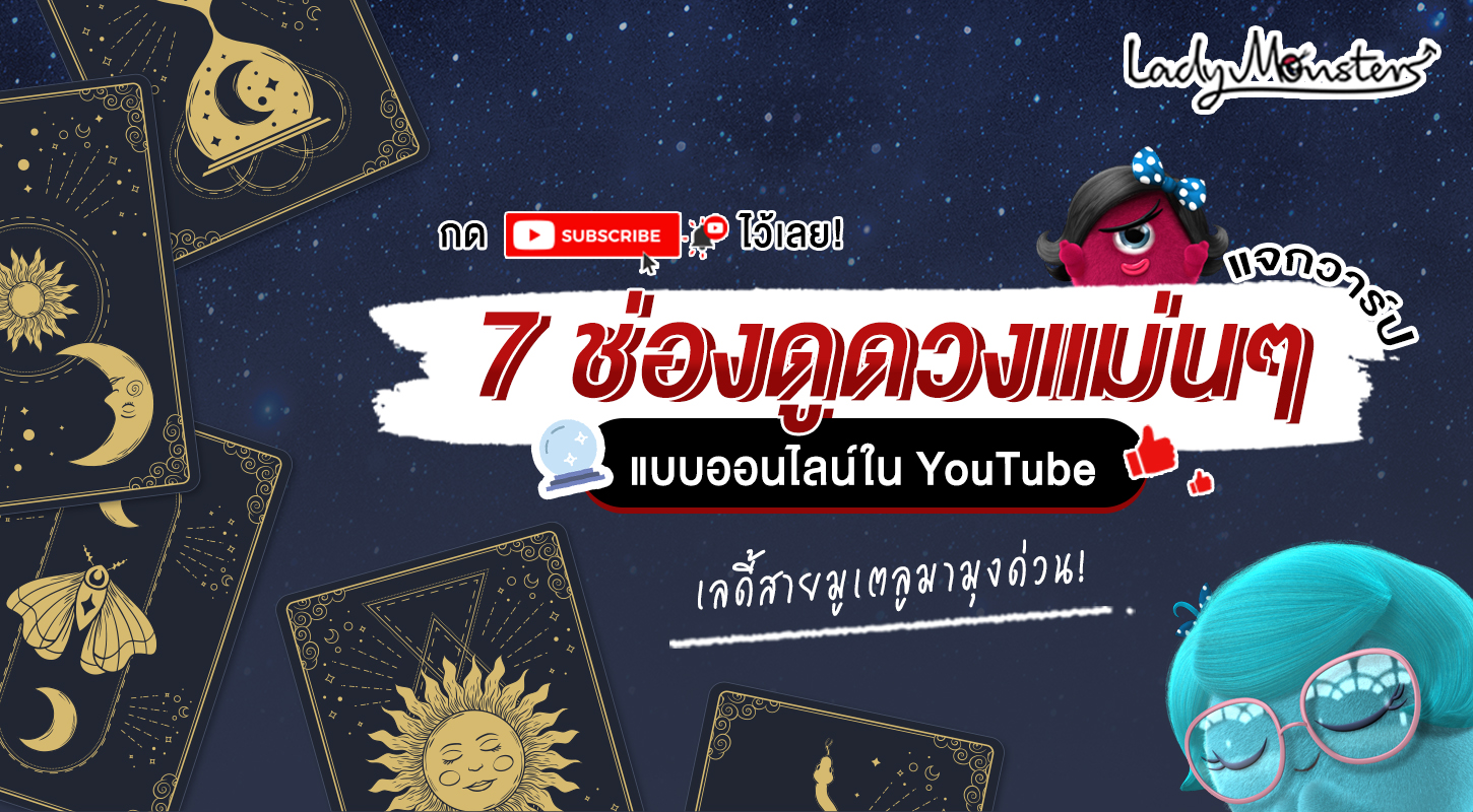 ครบแล้วกับ 7 ช่อง YouTube ดูดวงออนไลน์ที่เลดี้มอนสเตอร์นำมาฝากกันวันนี้นะคะ ขอย้ำอีกทีว่าเป็นการทำนายแบบภาพรวม ไม่ได้เฉพาะเจาะจงเราคนเดียวน้า อาจจะตรงหรือไม่ตรงก็ต้องใช้วิจารณญาณดีๆนะคะ ถือว่าเป็นการดูเพื่อให้เรามีการเตรียมตัวรับมือกับสิ่งต่างๆได้ดีขึ้นก็พอน้าาา