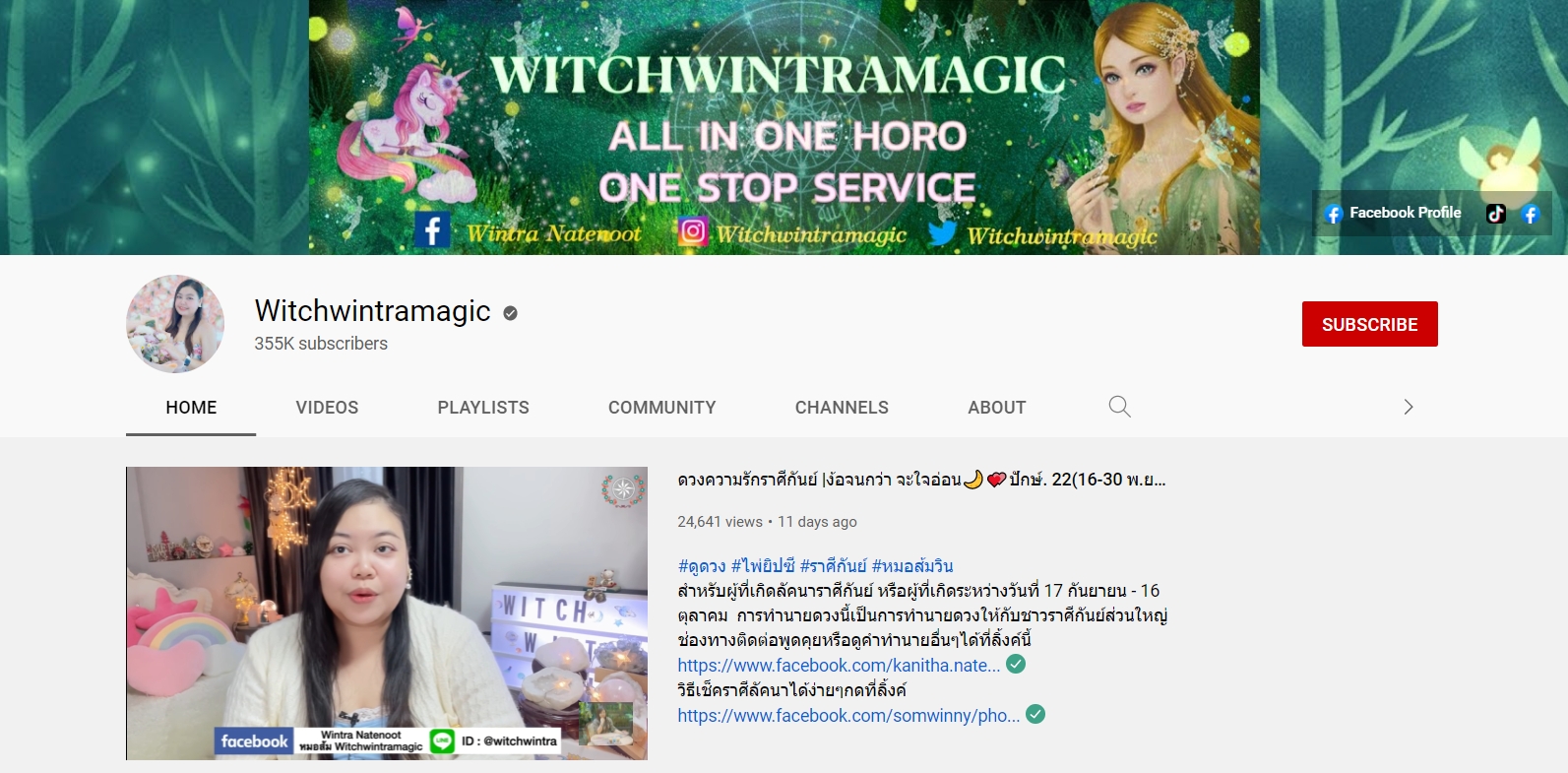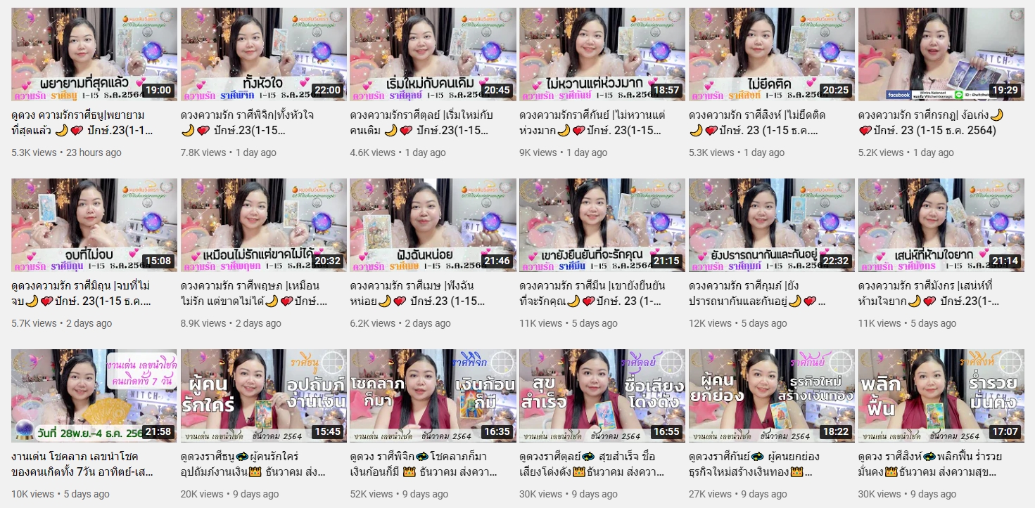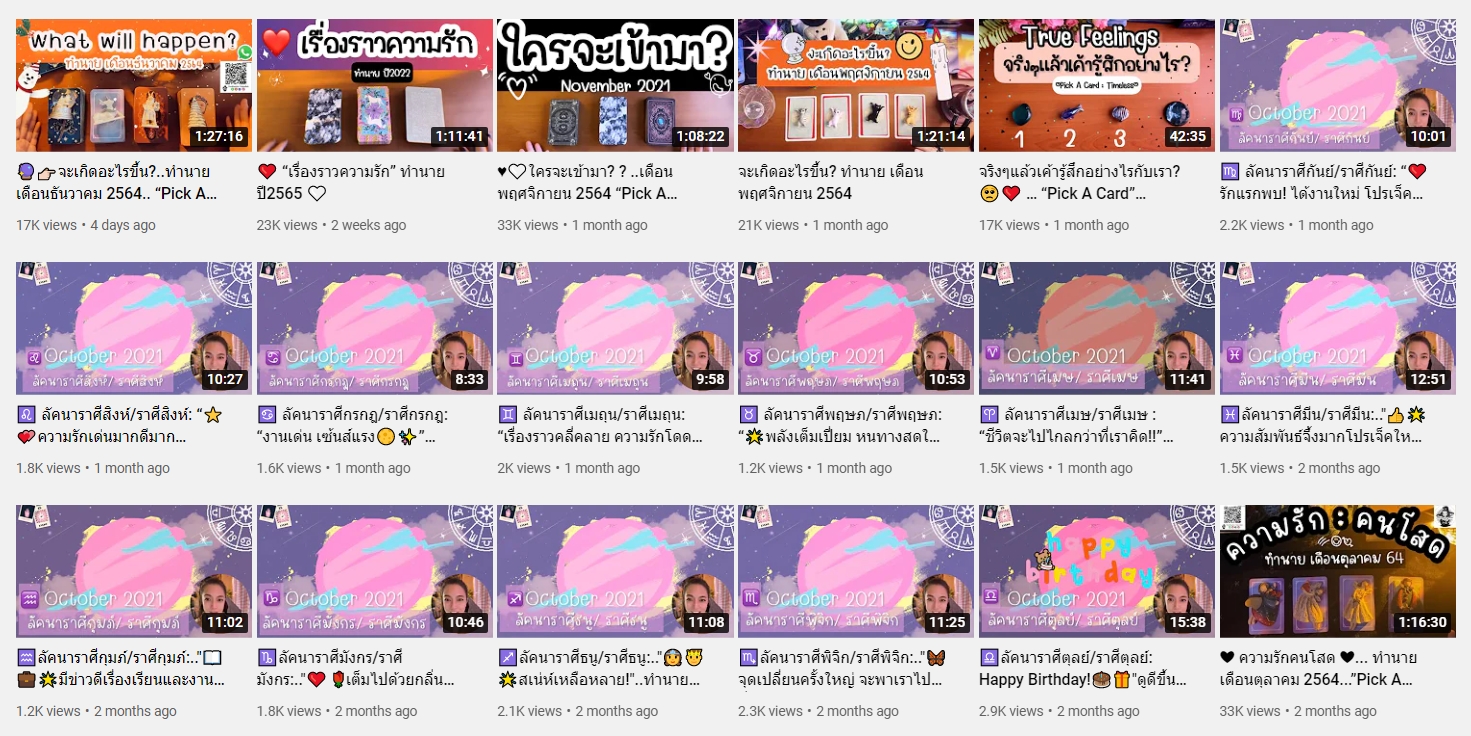 ช่องนี้เป็นอีกหนึ่งช่องที่ดูดวงความรักได้แม่นเฟร่ออ แถมมีการดูดวงความรักหลากหลาย ทั้งรายปักษ์ ดูตามสถานการณ์ต่างๆ ช่วงนี้เป็นยังไง ช่วงไหนราศีไหนเด่นเรื่องอะไร และนอกจากเรื่องความรักแล้วยังมีเรื่องการงาน การเงิน พร้อมให้เลขนำโชคไปอีกกก