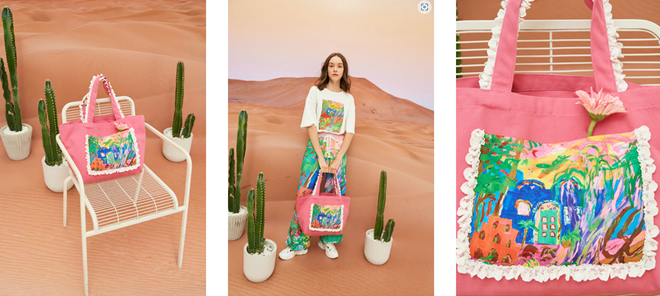 เอาใจสาวฟรุ้งฟริ้งมุ้งมิ้งคัลเลอร์ฟูลกันบ้างดีกว่ากับ GENTLEWOMAN รุ่น CASA AZUL TOTE BAG กระเป๋าถือขนาด 20 นิ้วชมพูชมใจหวานสุดอะไรสุดแต่ยังไม่ทิ้งความเก๋ด้วยการใส่ภาพวาดสีน้ำเพิ่มลูกเล่นและความน่าสนใจให้กับกระเป๋าใบนี้